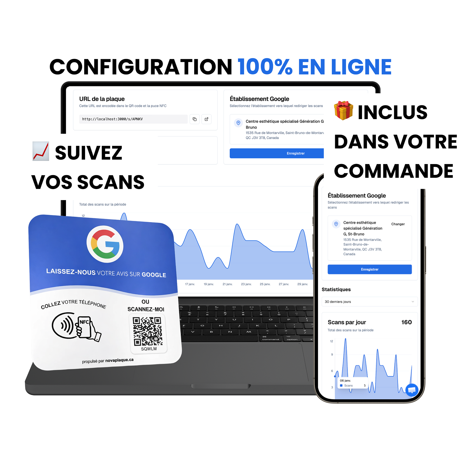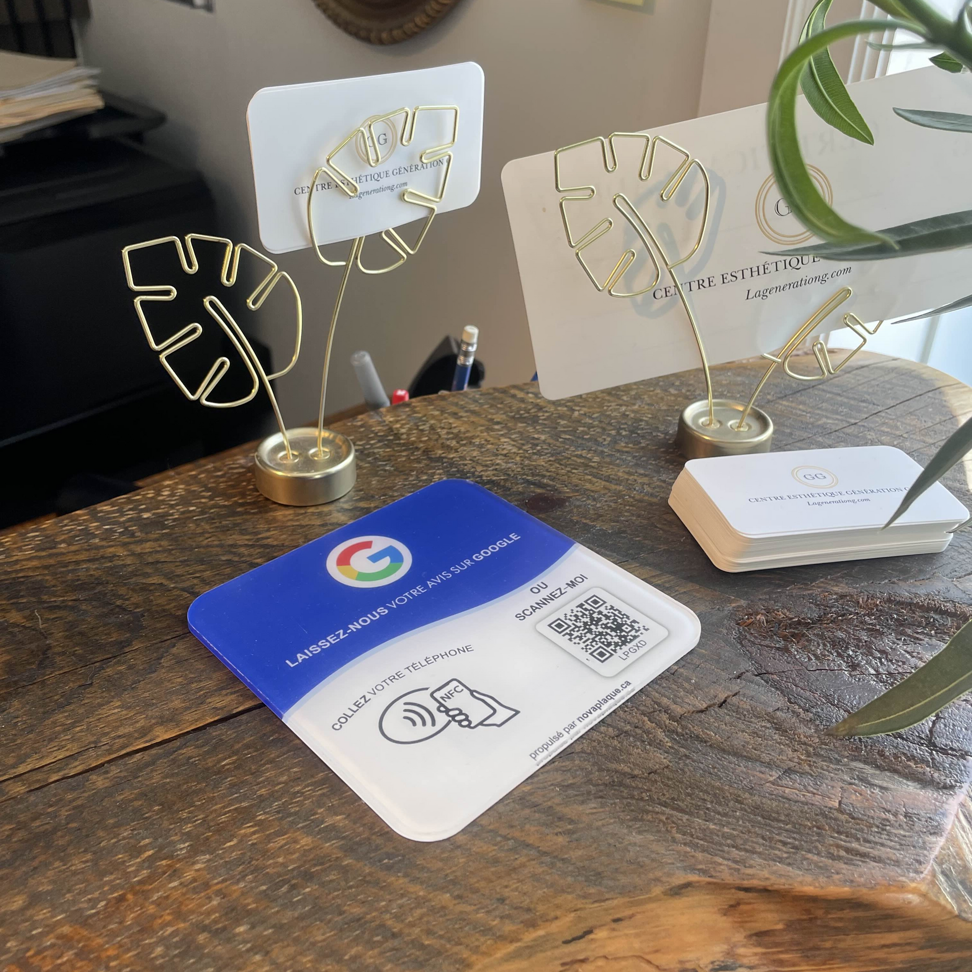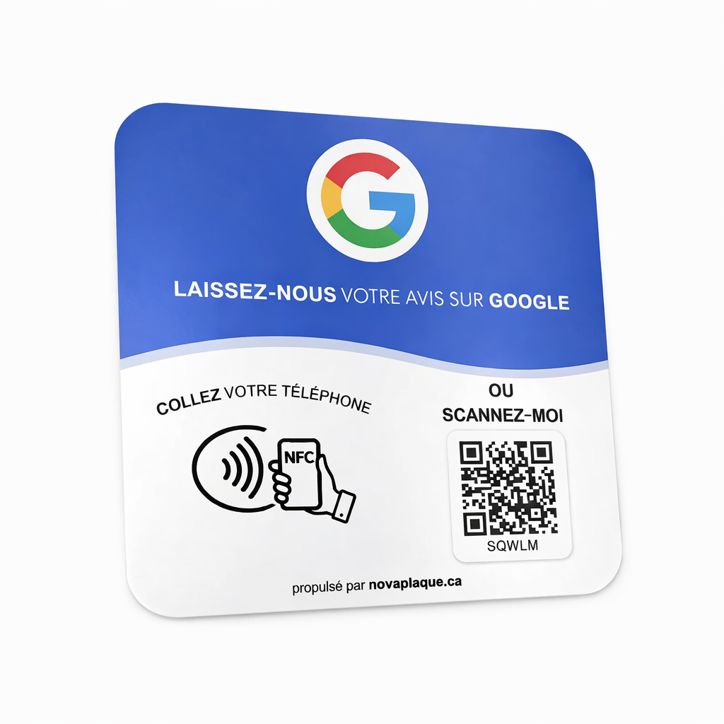 C’est très simple : la plaque utilise la technologie NFC (sans contact) et un QR code. Le client approche son smartphone de la plaque (comme pour un paiement sans contact) ou scanne le QR code, et votre page d’avis Google ou votre profil Instagram/Facebook s'ouvre instantanément. Aucun téléchargement d'application n'est nécessaire.